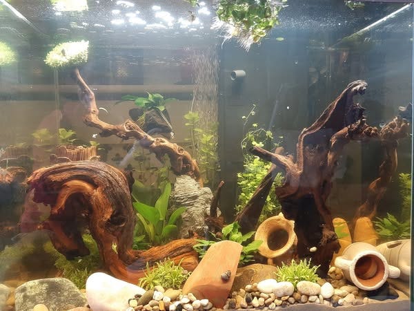 It is so easy to get tangled up in life like a dog chasing its own tail. It is too easy to hang our “happiness” on external factors, to become attached to outcomes and reduce our possibilities to “success” or “failure”. For example, if the aqurium looks all fresh and clear, it is so easy to feel happy. If we notice bacterial bloom, or algae or a snail, it is too easy to feel “unhappy”.
